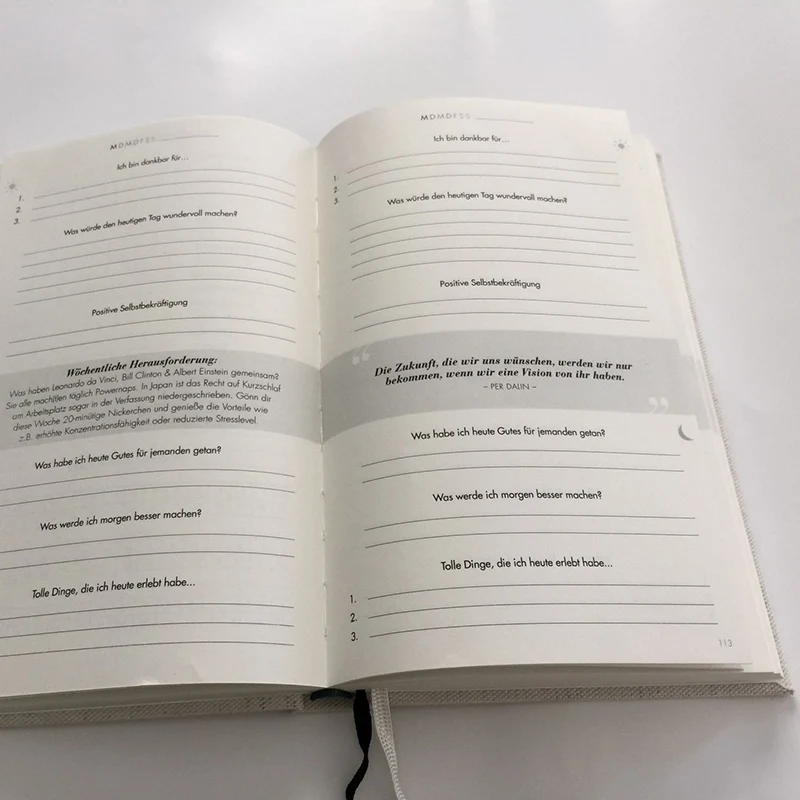 独自にデザインした印刷ジャーナルプランナーノートブックは、内側のページの印刷と製本に顧客のアートワークファイルを使用しています。表紙は、リクエストに応じてレザーファブリックリネンまたは印刷されたハードカバーにすることができます。大量生産前にサンプルブックが利用可能です。MOQは200個です。 Sunnywell 印刷のカスタマイズされたノートブックジャーナルには良いレビューとフィードバックがあり、品質に問題がある場合は、本を返金またはリメイクします。プランナーの方もお気軽にお問い合わせください。